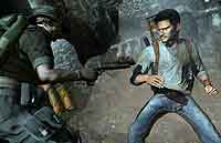 Когда Дрейк пересекается с пиратами, наемниками или еще кем-то "врагоподобным", завязывается конфликт, который обычно разрешается смертью одной из сторон. В Uncharted, как и в Gears of War, все перестрелки крепко завязаны на грамотном использовании всевозможных укрытий. Мочить врагов можно прицельно и вслепую, не высовываясь под пули, однако при этом следует учесть, что стрелять вы будете без заветного крестика в середине экрана, то есть по-настоящему наугад. Хотя иногда лучше действительно не высовываться, так как Натан не супербизон — двух-трех ранений вполне достаточно, чтобы отправить искателя сокровищ на свидание со знаменитым предком. Кстати, аптечек в игре нет (пора бы уже и привыкнуть), поэтому Дрейк умеет самовосстанавливаться, достаточно просто спрятать его подальше от вражеских пуль.