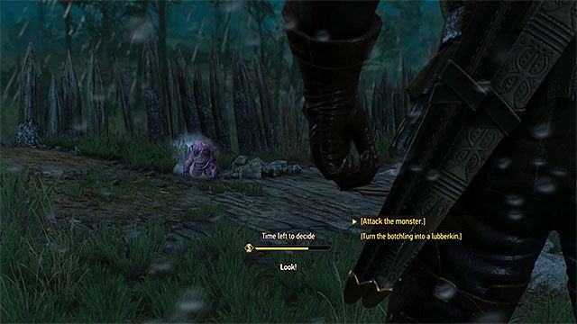 В этом случае игоша превратиться в здоровенного монстра. В бою с ним поможет проклятое масло. Вначале драться будет не трудно: просто избегайте сильных атак игоши, глушите его Аксием и атакуйте несколькими быстрыми ударами. Только не увлекайтесь, потому что когда игоша придет в себя, он может очень больно контратаковать. Позже игоша призовет призраков, которые достаточно сильные, чтобы их нельзя было игнорировать, однако все же старайтесь бить преимущественно игошу. После победы слушайте диалог с бароном и ждите, пока Геральт соберет кровь игоши.