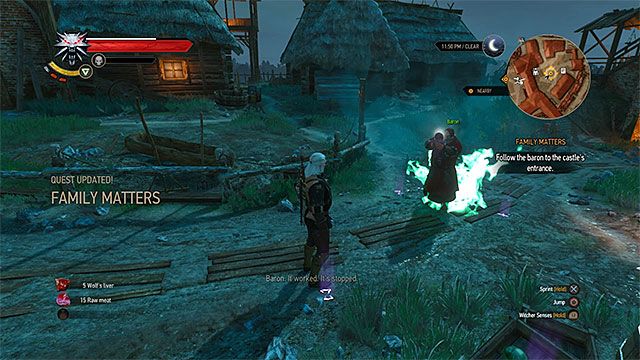 Дом ворожея находится в лесу на запад от Врониц (M3,7). Там вы увидите группу людей барона, пытающихся попасть внутрь. У вас есть три варианта, как поступить.