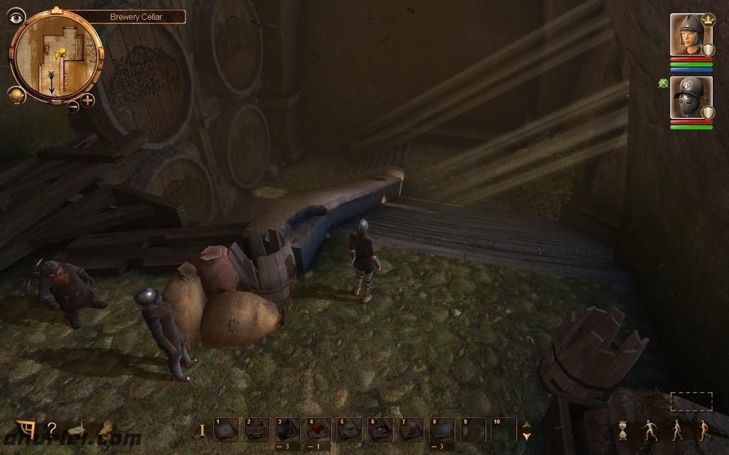 Нехватка фантазии проявляется не только в диалогах. Radon Labs не вложила в игровой процесс ни одной собственной идеи, и если из правил The Dark Eye нечего позаимствовать, Drakensang мгновенно скатывается на упрощения и штампы. Беготня от маркера к маркеру вместо заданий, безликие персонажи и сотни кликов в час по цветочкам, трупам, сундукам и прочим якобы интерактивным объектам – такой предстает она за пределами опасных подземелий. Bard’s Tale пародировала эту игру: и крысиного Дьябло, и расставленные повсюду бочки, и персонажей с похожими именами. Тут как тут бессменные эльфы, а с ними яростные орки и сплющенные гномы. Нетрудно угадать, кто окажется Избранным, кто соберет древний артефакт, одолеет загадочную секту и пройдет испытания оракула. И при этом едва ли сможет проникнуться происходящим. Развязка любого приключения определена заранее, а энтузиазм героев спасать Авентурию от всех зол шит белыми нитками.