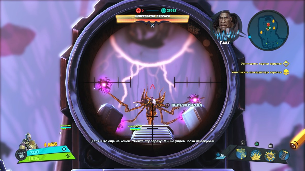 Когда же вы сформируете уже устоявшуюся партию, то лучше всего для начала пройти сюжетную кампанию, которая подготовит вашу команду к онлайн-боям. Сюжетных миссий не так много, но они довольно разнообразные и разворачиваются в самых разных локациях: завод посреди какого-то адского пекла, заснеженные просторы и прочее. Также разнообразны задания: прорыв через орды монстров, защита гигантского шагохода, уничтожение орудия массового поражения – и враги, с которыми вы столкнетесь. И поверьте, роботы, зомби и демоны, пусть и в большом количестве, вызовут у вас куда меньше проблем, чем одиночные мини-боссы, способные вынести любого из игроков с одного-двух ударов или выстрелов.