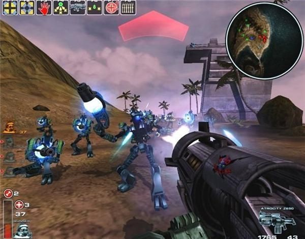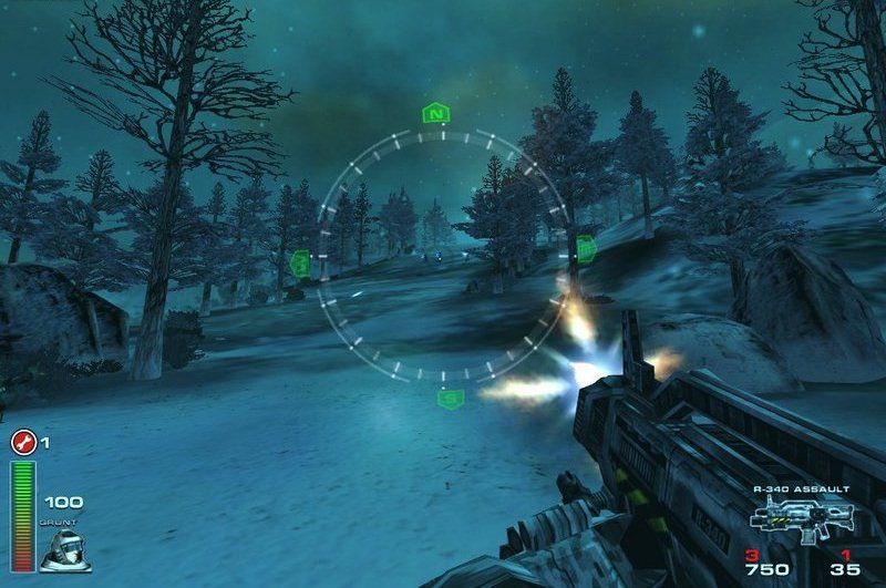"Сколько было видов техники в Halo? Вот тут-то мы и нанесем наш смертоубийсвенный удар! Мы не ограничимся какой-то хилой пятеркой! Мы забабахаем несколько десятков всякой ездяще-летающей!" — самое главное в этом случае не забывать, что качество иногда намного лучше количества. Да, техники много. Различные вариации ее мы уже видели и в Halo, и в UT2004, и в Tribes, но здесь братки оторвались на полную катушку, загубив весь кайф от поездок с ветерком на корню. Нет никакого перехода от первого лица к третьему — смотрим сквозь маленькое неудобное окошко, которое едва ли открывает и треть экрана. Нет интуитивно понятного управления — пару раз придется перепроходить тренировочные миссии, чтобы просто научиться взлетать. А наши друзья, которые по приказу высшего начальства разделяют с вами эту утомительную прогулку, упорно отказываются прыгать в кабину. Плетутся где-то позади да нюхают клубы дыма.