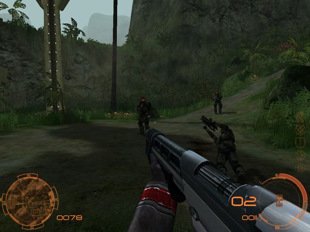 Изредка джунгли будут сменяться вражеской базой, будет меняться оружие в руках врагов, да вместо своих двоих можно будет воспользоваться двумя, но уже робота. Или четырьмя — незабвенной багги. Сказать, чтобы это как-то особым образом радовало — и не скажешь. Все упростилось, нет детектора, ни разу не встречался бинокль, зато отпала надобность беспокоиться о боезапасе — вон сколько трупов после вас будет валяться на земле! В такие моменты понимаешь, что мясо — это не всегда хорошо, что загружать игру можно было бы и почаще, что аптечка в сумке каждого врага слишком уж облегчает жизнь, а зарядное устройство для восполнения энергии, что расходуется на наши супервозможности — просто-таки чит какой-то. Наличие нескольких таких устройств позволяет использовать возможности без ограничений, хотя в скорости и невидимости надобности ни разу не было. Намного проще включить ускоренные рефлексы (замедление) и броню да спокойно перекоцать врагов меткими выстрелами в голову из любимой винтовки Xatron. Арсенал почти в неприкосновенности перекочевал в сиквел из оригинала — разве что встретился мне тут гранатомет, которого в первой части я не припоминаю. И винтовок снайперских стало две. Остальное оружие лишь дизайн поменяло — функции остались прежними. Плейеры, сотрясающие воздух забористыми мелодиями остались не месте, бинокль хоть и должен присутствовать, но на свидание ни разу не явился, разновидности боеприпасов — как по калибру, так и по длине патрона — сохранились в неизменности. Да что там — почти все в этой игре не претерпело изменений: багги и шагающие роботы остались на своих местах, а обо всех новациях было сказано ранее.