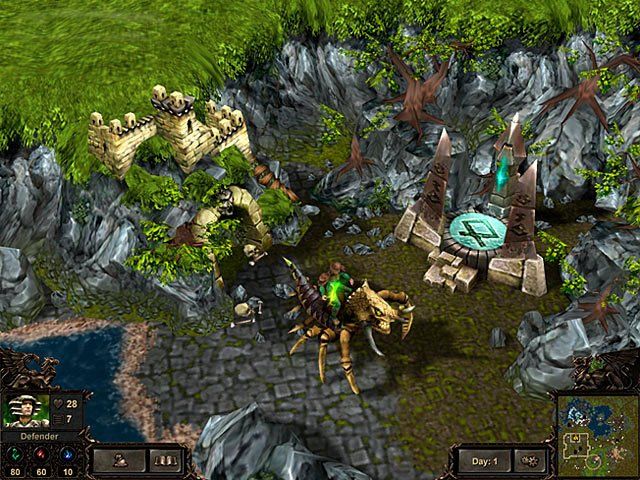 Скриптовые ролики, гм... Не впечатляют. Ну что можно показать на движке стратегии? Все на уровне Героев, персонажи лишь бродят туда-сюда и ведут разговоры о том, как бы побыстрее перебить мерзких противников. Само же прохождение карты — бродяжество по тропе войны с минимальными ответвлениями. Около 80% врагов (а значит и опыта, жизненно важного для единственного и неповторимого героя игрока) победить нужно обязательно, остальные же стоят чуть вдали от основного пути и охраняют ресурсы, артефакты да полезные строения. И ресурсов, и артефактов, и полезных строений не так много разновидностей, однако вполне достаточно, чтобы игра могла спокойно существовать на базе системы боя, разработанной Нивалом, — главной части игры, как я уже говорил.