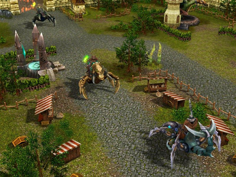 Главными строениями являются места закупки и продажи карт. Пусть карты можно брать с поверженных врагов, но для создания сбалансированных колод нужны не столько сильные, сколько подходящие друг другу карты. Впрочем, некоторые заклинания подойдут любой колоде. Никто не может обойтись без вызова существ, а синтетское заклинание, вырывающее из руки все карты, — самое страшное зло, причиняемое герою во время боя в мире Демиургов II, приходится пару ходов бездействовать, ожидая новых карт. И так далее, но учтите, что мощнейшие заклинания не только повышают одни, но и существенно понижают другие параметры. У Хаотов есть преотличнейшее заклинание, повышающее атаку ВСЕХ дружественных существ, но понижающее их жизни на два.