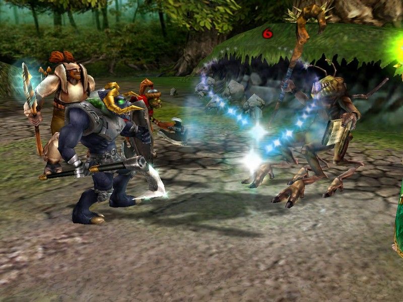 Все, что касается изображения, также не вызывает нареканий. Трехмерная картинка выглядит чудесно, прорисовка монстров и героев хороша. Но все же графика не изменилась с 2001 года, если не считать спецэффектов, новых существ и героев. Пусть прорисовка не идеальна, но все потрясающе красиво, зачем делать лучше? Тем более что большую часть деталей можно разглядеть лишь во время приближения камеры. Кстати, во время боя камера привязана к точке далеко сверху сзади героя. Вид очень красивый, небо (на некоторых боевых аренах оно красиво анимировано) выглядит очень зрелищно, вся арена просматривается в самом выгодном ракурсе, но рассмотреть что-либо проблематично. Иногда, правда, камера срывается с места и смакует красивые моменты боя, будь то заклинание героя либо действие существа. Вблизи модели выглядят не хуже, чем издали. А вот спецэффекты — это что-то! Огромные огненные фонтаны, бьющие из земли при колдовстве героем Хаотов; фигуры, опутываемые ростками энергии жизни, создаваемых Виталами, повергают в благоговейный ужас. Вах! Гордости за видеокарту нет предела, все по уровню зрелищности соответствует таким монстрам, как Final Fantasy VIII, Summoner и... Тьфу, не могу вспомнить писишные игры, зрелищность которых в создании заклинаний создает такую же реакцию. Невозможно не заметить тех вспышек и огненных шаров, что сопровождают любые заклинания. Герои бойко махают мечами и прочими видами холодного оружия (правда, зачем героям оружие, совершенно не понятно — они им только махают при колдовании заклятий), да еще и покрикивают. Кричат совершенно не понятно что, но очень воодушевляет.