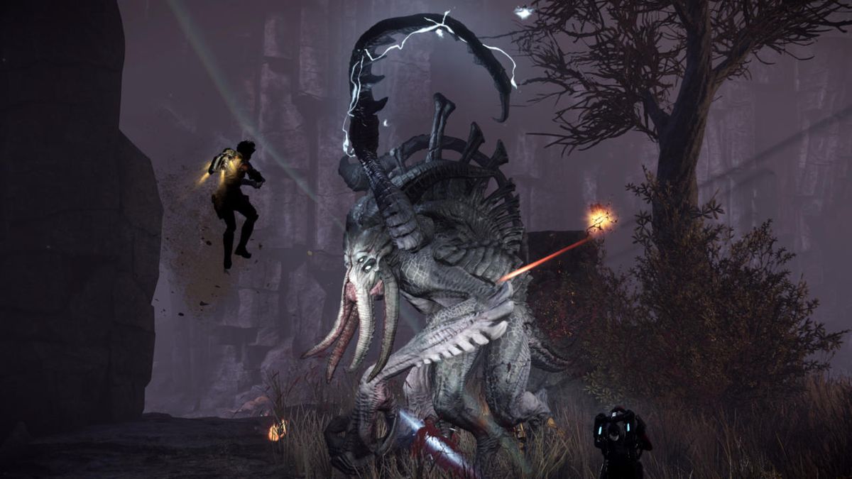 Основная фишка Evolve в асимметрии, которая, к слову, уже давно не новость в индустрии. Есть две команды, но в одной четыре человека, а в другой… один. В первой — команда бравых охотников с разными навыками, а во второй — огромный инопланетный монстр, которому они должны противостоять. Ключевой момент в последнем слове, потому что не всегда убийство чудовища является приоритетной целью — зависит от режимов.