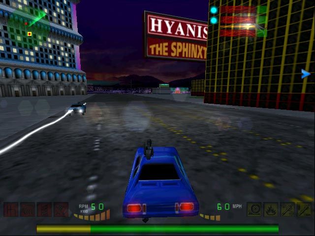 В сравнении с первой частью - небо и земля (это насчет графики). Красиво, ничего не скажешь. Города в вечернее время залиты неоном, работают, как и положено, светофоры, переливаются дивным цветом на капоте отражения рекламных огней. Все вывески читаются. За городом, на шоссе сплошь и рядом попадаются встречные автомобили, бензоколонки, кемпинги и проч. В принципе, можно ехать, куда захочешь, и любоваться красотами пейзажей (если у вас в задании не сказано, что вам нужно обязательно уложиться в определенный промежуток времени и прибыть к месту назначения как можно раньше). И здесь, если вы прекрасно ориентируетесь на местности, можно применить против оппонентов, как правило многочисленных, хитрый тактический ход. Объехать их сзади и с криком "не ждали!" сжать коленками гашетку залпового огня... Так что элементы стратегии в игре вам будут встречаться довольно часто, в зависимости от вашего видения будущего поля сражения. Видеофрагменты в сравнении с первой частью также выглядят намного лучше, а главное, информируют о предстоящем задании или целой миссии.