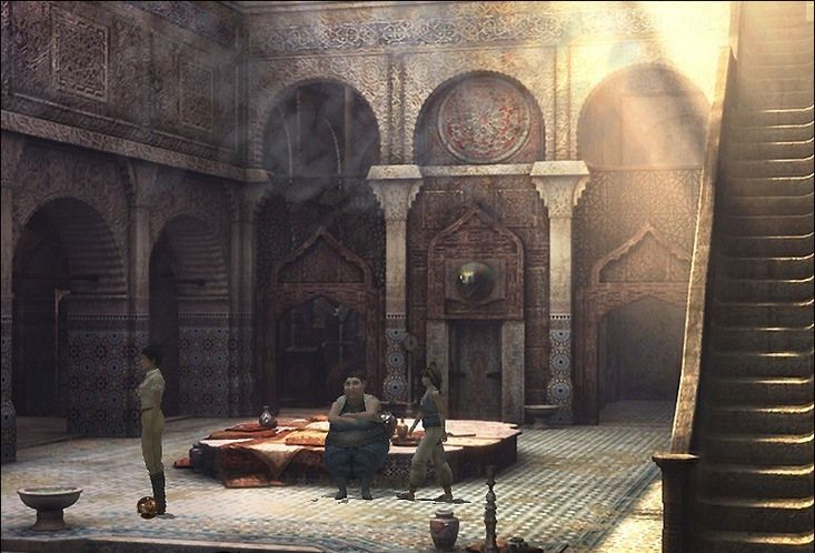 В погоне за сказкой мы невольно натыкаемся на слишком взрослые элементы истории вроде развернувшейся в стране повстанческой войны. Но даже на фоне столь внушительных событий характеры персонажей остаются пустыми и безжизненными, не отнимая, но и не добавляя никаких положительных эмоций в общую копилку впечатлений. Да и как можно всерьез воспринимать этих статистов, когда самое большое количество тем для разговора у них чаще всего приходится на пункт "война"? Истории "вечного" летчика-космонавта или даже самой Кейт Уолкер до сих пор вызывают гораздо больше переживаний, чем безыскусные и банальные повествования о "горьких" судьбах африканских манекенов. Ничего загадочного в этом нет. Кто-то гонится за декорациями, кто-то — за сюжетом, а гении в это время делают сразу и то, и другое. Приоритеты Бенуа, очевидно, сильно сместились в сторону оформления и совершенно проигнорировали возможность завернуть в столь манящую обертку еще более высококачественную начинку. Все бэкграунды словно нарисованы руками настоящих художников от рождения. Не посрамив чести прародительницы, уже в 2002 году баловавшей нас живописными сибирскими пасторалями, Paradise смещает свои географические предпочтения на несколько десятков градусов широты ближе к экватору. Величественные зеленые леса, мрачные старые копи, пышное великолепие дворца принца, отдающее легким ближневосточным колоритом — каждый подобный пейзаж можно рассматривать долго и с удовольствием. Несмотря на легкую замыленнность картинки из-за слишком низкого разрешения 800х600, используемого игрой по умолчанию, стараниями художников каждый подобный план буквально вытягивает игру из мутной лужи, куда она угодила по случайной своей неловкости. Куклы персонажей выглядят словно ненавязчивый привет из прошлого века: уровень моделей Syberia переплюнули, однако же от общей устарелости местных полигональных болванчиков режет в глазах.