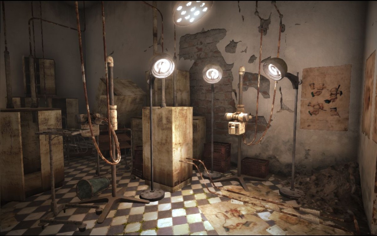 Видно, что воссозданию локации было уделено много сил и времени. Разработчики детально перенесли в игру крупный больничный комплекс, старательно уделяя внимание мелочам. Благодаря кропотливой работе сразу проникаешься мрачной атмосферой этого места. Обшарпанные стены, опустевшие койки и брошенное в коридоре инвалидное кресло, побитая кафельная плитка и остатки зловещих медицинских агрегатов не оставляют сомнений в том, где оказалась главная героиня.