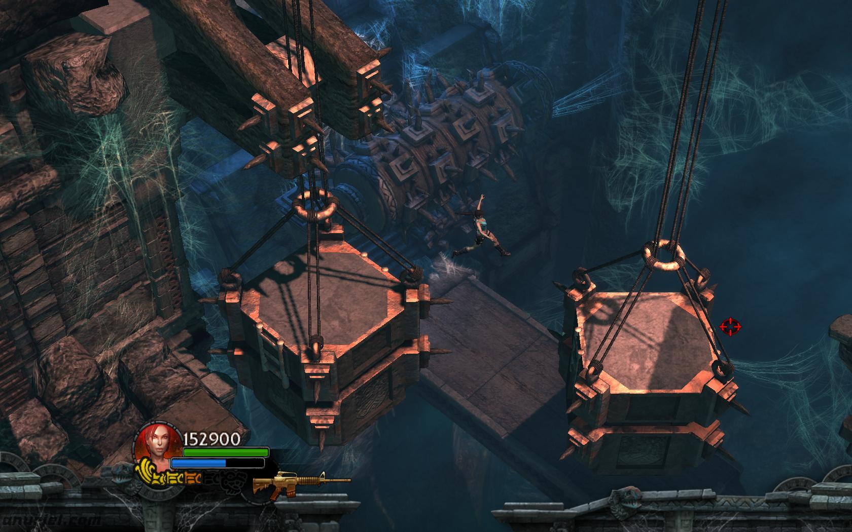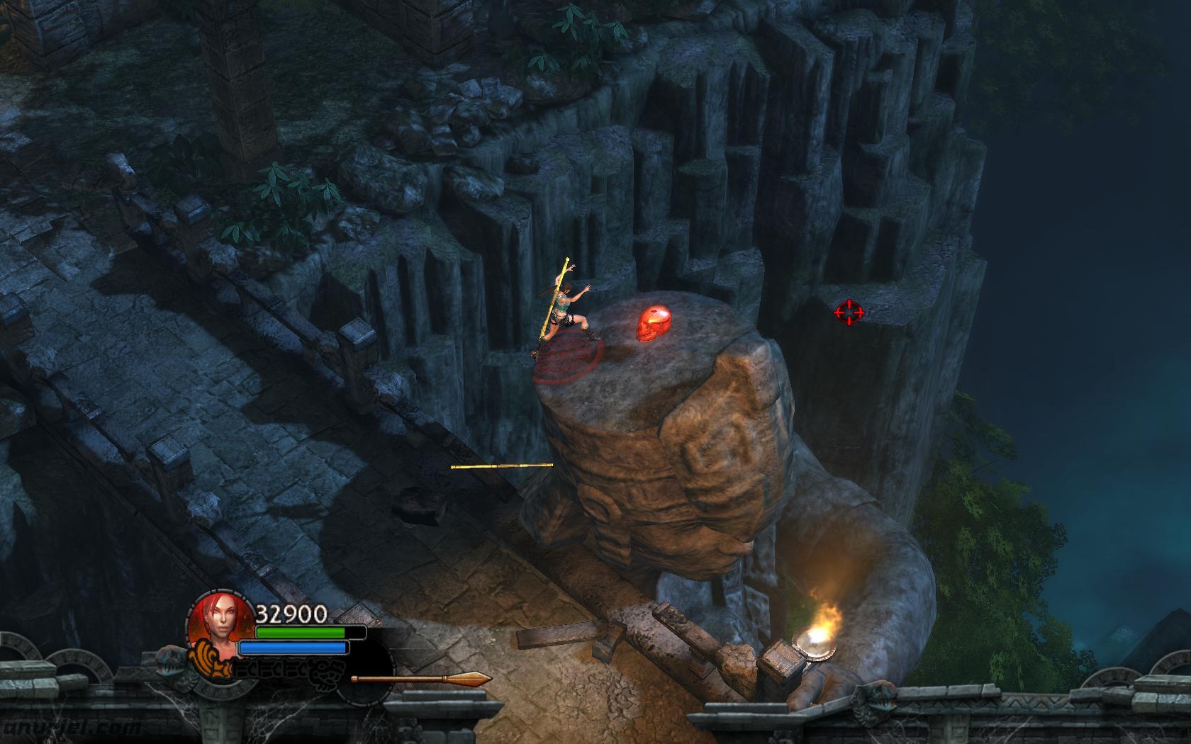 К огромному моему сожалению, опробовать кооператив мне так и не удалось, так как для этого нужен второй игрок. Из всех моих знакомых единственный кто более-менее знаком с виртуальными развлечениями – это плюшевый медведь, который постоянно сидит и смотрит в монитор, когда я у компьютера. Но я не об этом – судя по отзывам опробовавших данный режим игры, механика игры резко изменяется. Копья, так нужные для преодоления высот, теперь находятся во владении лишь у воина Света, но запрыгивать на них может лишь Лара. Кроме того у Тотека, так зовут представителя сил добра, есть в распоряжении щит, который можно использовать не только в качестве прикрытия от атак противников, но и в качестве своеобразного трамплина. Не осталась в стороне и Лара, которая помогает своему боевому товарищу забираться на выступы и стены, спуская ему вниз свой крюк-кошку. Такое взаимодействие мне напоминает командную работу в обожаемом мной мультиплеере Battlefield Bad Company 2. Судя по всему кооперативный режим этой игры без командных действий лучше и не пробовать.
